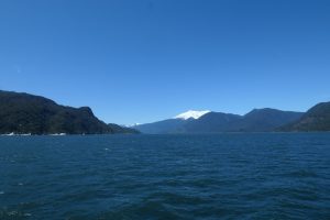 Gestern abend bin ich noch zum Flughafen und habe mein Gepäck geholt. Alles kam unbeschadet an. Heute früh habe ich die Taschen richtig gepackt und war kurz mit den Rädern bei der Tanke, um Luft reinzulassen. Hab vorher sogar die Reifen getauscht, hinten war etwas abgefahrener als vorne. Um 10 Uhr ging es an der 0-km Marke der Ruta 7 (Carretera Austral) los. Schöner Sonnenschein und etwas Wind von vorn war fast perfekt. Auf den ersten 5km war sogar ein Radweg, dann guter Asphalt mit wenig Verkehr. Osorno und Calbuco waren perfekt zu sehen. Nach gut 40 km kam die erste kurze Fährfahrt, dann ging es weiter nach Süden durch den Wald. Leider etwas hügelig, die meisten der 1320hm wurden hier gemacht. Aber schöne Gegend mit weissen Bergipfeln über dem Wald. Nach fast 100km war Hornopiren erreicht, das Zelt steht am rauschenden Fluss. Abends gabs lecker Fisch, morgen wird der größte Teil des Wegs mit der nächsten Fähre zurückgelegt, also kann ich mich etwas erholen.