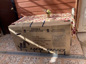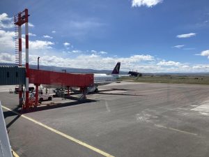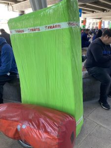 Es passiert selten, dass Chilenos vor der verabredeten Zeit da sind, aber der Transfer zum Flughafen erschien schon kurz nach 8 Uhr (statt zwischen halb Neun und Neun) an der Hospedaje. Ich war aber schon mit Frühstück fertig. Dann ging es kreuz und quer mehrfach durch Coyhaique (eine Reisende war noch nicht soweit, die Adresse wurde später nochmal angefahren), bis um 9 Uhr alle Passagiere eingesammelt waren. Um 10 Uhr waren wir dann am Flughafen von Balmaceda (außer Autovermietungen gibts da kaum etwas) und ich konnte mich in die Schlange am Check-In einreihen. Der Flug um kurz vor 12 Uhr war etwas unruhig, deshalb fiel der Bordservice aus. Zum Glück hatte ich noch Kekse dabei. Die Ankunft in Santiago um 14:15 fand am hintersten Gate statt, bin bestimmt 15 Minuten zur Gepäckausgabe gelaufen. Der Radkarton kam ziemlich zerfleddert an. Nach einer notdürftigen Reparatur habe ich mein Gepäck zum internationalen Terminal geschoben und den Karton dort einwickeln lassen. Lustigerweise gibts keine Gepäckaufbewahrung, also durfte der kostenlose Transfer zum Hotel alles mitnehmen. Wie überall ist das Flughafenhotel (selbes WLAN Passwort wie vor 3 Jahren) in einer öden Gewerbegegend, ich musste einen Kilometer zum nächsten Restaurant (hab mich für einen Peruaner entschieden, hatte aber kein Cuy) laufen. Wenigstens ist es 23 Grad warm und sonnig, leider ist der Hotelpool zu. Dort gab es auch einen kleinen Laden, hab also jetzt Bier und Gebäck für heute Abend.