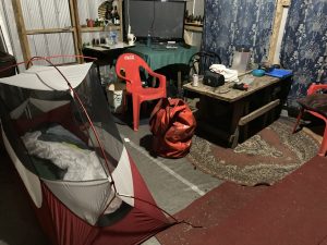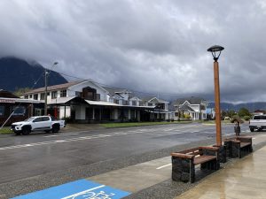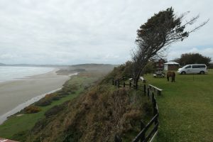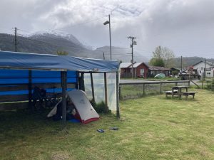 In der Nacht hat es heftig gestürmt und geregnet, zum Glück war mein Zelt in der Hütte. Auch am Tag hat es ständig Schauer gegeben, nur Mittags konnte ich zum Restaurant laufen und nach dem Essen noch eine kurze Runde durchs Dorf drehen. Keine Ahnung, ob es mit Sonne hier hübscher aussieht. Ab 11 Uhr morgen sollte es trockener werden, dann gehts weiter nach Süden.