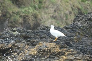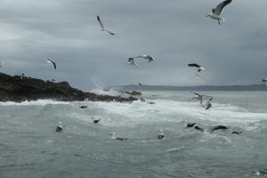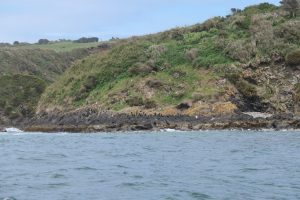 Da der vorher angefragte Ausflug zur grössten Insel Chiles mangels Teilnehmer gestern abgesagt wurde, bin ich selber nach einem umfangreichen Frühstück (wurde erst ab 11 Uhr Magenzeit serviert) zum Busbahnhof gelaufen und habe einen Bus zur Insel nach Ancud genommen. Bis zur Fähre hat es geregnet, danach war trocken. Die Meerenge nach Norden sind 4km, eine Brücke ist im Bau (wird eigentlich nur im Sommer gebraucht, wenn es bis zu 4 Stunden Wartezeit für die Überfahrt sind). Jetzt konnte der Bus sofort übersetzen. Die Gegend ist sehr hübsch. Der Ginster sorgt zwar für Farbe, ist aber nur ein Grund, warum heutzutage keine Pflanzen nach Chile gebracht werden dürfen, weil er eine invasive Art darstellt. Ancud ist ein nett anzusehendes Dorf an der Einfahrt Richtung Puerto Montt inklusive altem Fort. Auch hier gab es keine weiteren Interessenten zur Fahrt nach Punihuil, also bin ich zum doppelten Preis alleine zu Juan in den Minibus für eine Privattour gestiegen. Er hat dann gleich einen Platz im Boot für mich klargemacht, sodass ich nach einer halben Stunde Fahrt direkt umsteigen konnte. Vor Punihuil gibt es eine Reihe von Felsen, auf denen Magellan und Humboldt Pinguine heimisch sind. Dummerweise brüten die Pinguine derzeit in unter Büschen versteckten Nestern und kommen nur vereinzelt kurz raus, damit die Möwen keine Eier klauen können. In den 40 Minuten gab es nur eine Sichtung eines gerade ins Wasser springenden Magellanpinguins, zu kurz für ein Foto. Auch der Seeotter war zu schnell im Wasser. Die anderen Seevögel waren nicht so ganz interessant. Ab Januar wäre besser gewesen, da sind die Jungen schon geschlüpft (wie vor ein paar Jahren am Pan de Acucar weiter nördlich). Egal, mit dem Zodiac auf dem Pazifik war nicht schlecht und die Gegend wirklich hübsch. Abends hab ich dann noch ein paar Einkäufe erledigt und könnte praktisch jetzt losradeln, wenn denn mein Gepäck da wäre. Die Statusmeldungen verwirren aber eher, muss morgen nochmal mit AirFrance telefonieren. Immerhin meldet sich das Rad nicht mehr aus Frankfurt.