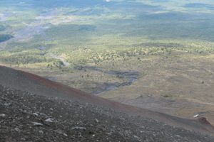 Diesmal hat es funktioniert, pünktlich um 8:30 werde ich im Hotel abgeholt. Zunächst wird 20km weiter nördlich in Puerto Varas ein kolumbianisches Paar abgeholt, dann geht es am Westufer des Lago Llanquihue (größter Binnensee Chiles, für den Radfahrer ist natürlich nur die 150km Strecke um den See herum relevant) nach Norden. Da der Himmel noch wolkenverhangen ist, biegen wir zum Rio Petrohue ab und erreichen nach 60km den Wasserfall (hab seit Island und Norwegen ja keinen mehr gesehen und sogar auf den Rheinfall verzichtet). Der Wald und das türkise Wasser machen die 5m Höhe ganz hübsch. Hier ist Vulkangebiet, entweder gibts Ascheregen vom Osorno oder zuletzt vom Calbuco. Heute ist aber ruhig (oder die Wolken verdecken einen Ausbruch), aber die Asche links und rechts der Straße ist häufig zu sehen. Am Ende der Straße und Anfang des Flusses ist der Lago Todos Los Santos. Nach einer Fährfahrt könnte man am anderen Ende bequem nach Argentinien wandern. Dann geht es am Petrohue zurück zur Abzweigung des Osorno und auf 1200m hoch. Der fuchsreiche (4 Stück waren zu sehen) Wald endet etwa auf 1000m. Oben ist eine Skistation, aber die Saison ist schon vorbei. Der erste Lift auf 1400m war noch in Betrieb, ich bin aber lieber an der Flanke hochgelaufen und hatte einen immer besseren Blick auf Wald, Rio Petrohue, Lago Llanquihue und sogar aufs Meer. Zum Schluss war noch Mittagessen am See, maximale Verweildauer am Buffet wären 2 Stunden gewesen, ich hab aber das meiste in einer probiert (ich muss sagen, der frische Lachs aus der Gegend hat sogar geschmeckt). Dann ging es nach einem letzten Blick auf See und Gipfel des Osorno zurück nach Puerto Varas und Puerto Montt. Unterwegs bekam ich noch die Nachricht, dass mein Gepäck heute Abend hier landet, ich bin gespannt.