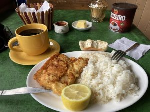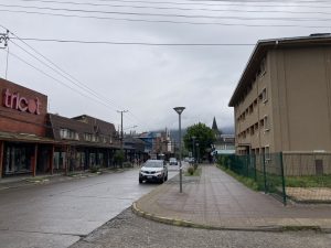 Um 10 Uhr ist es noch sehr ruhig in der Innenstadt von Coyhaique, die Geschäfte machen erst jetzt auf. Im Sodimac Baumarkt gibts Fahrradflickzeug (hab ich daheim vergessen), im Radladen hole ich noch einen Ersatzschlauch, und dann laufe ich wieder durch den Unimarc Supermarkt, um Essen für heute und die Weiterfahrt morgen einzukaufen. Dann habe ich Musse, Schuhe und Wanderhose zu säubern und öle mein Fahrrad. Wenn es aufhört zu regnen, versuche ich noch, die bei kleinem Kettenblatt springende Schaltung zu justieren. Die Bremsbeläge vorne muss ich auch anschauen, immerhin habe ich diesmal Ersatz dabei.