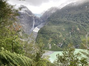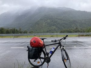 Heute war mehr Strecke zu machen, also bin ich schon um 10 Uhr losgeradelt. Um einen Anstieg auf 700m und schlechtere Strasse zu vermeiden, bin ich nach 15km von der Ruta 7 in Richtung Puerto Aisen abgebogen. Am Abzweig Puerto Aisen – Coyhaique habe ich nach der Hälfte des Weges die erste Pause gemacht. Als ich wieder losfahren wollte, hat eine nette Chilena mit ihrem Pickup angehalten und gefragt, ob sie mich mitnehmen kann. Sie hat es nur schwer verstanden, dass ich die restlichen 43km gerne selber im Regen radeln wollte. Auf diesem Abschnitt gab es deutlich mehr Verkehr, sind aber alle sehr vorsichtig vorbeigefahren. An einem Wasserfall hab ich kurz angehalten, dann gab es noch eine nette Unterhaltung mit einem entgegenkommenden Radler aus USA. Jetzt weiss ich, dass die Fähre am Ende der Carretera Austral derzeit nur zweimal die Woche fährt und die Fähre über den Lago del Desierto auch Kreditkarte nimmt. Mal schauen, wie es in 2 Wochen ist. Gegen Ende gab es noch einen Anstieg mit 8% auf 400m, dort war dann auch wieder der Zusammenschluss mit der Ruta 7. Von oben hatte man einen schönen Blick auf das Tagesziel Coyhaique. Hab wieder eine Hospedaje genommen, will auch morgen beim Ruhetag im Warmen sein (hab ich schon erwähnt, dass es mit Ausnahme der zweiten Hälfte des Anstiegs und der Abfahrt bei 6-8 Grad nur geregnet hat?).