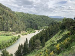 Nach einer angenehmen Nacht im warmen Zimmer bin ich kurz vor Elf wieder raus in den strömenden Regen. Entgegen der Vorhersage gab es unterwegs auch mal ein paar Minuten ohne Regen und der Wind hat schön geschoben. Heute waren es nur 58km mit 480hm bis Manihuales, hab ich ohne Pause mit 18er Schnitt gemacht, bergab bis zu 56km/h, alles schön asphaltiert. Links und rechts der Strasse waren Viehweiden in teils breiten Tälern. Da der Campingplatz in Manihuales exponiert am Fluss war, hab ich mir ein Zimmer in einer Hospedaje genommen. Also kann ich wieder im Warmen den Regen aussitzen. Mal schauen, wann sich das Wetter bessert und ich mehr von der Gegend sehen kann. Mal kurz im Regen anhalten, die nassen Handschuhe ausziehen, Foto machen und wieder los ist kein Vergnügen.
