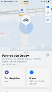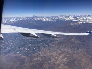 Der Transfer zurück zum Flughafen um 9 Uhr war kein Problem. Das Rad hat auf der Rückreise 100US$ gekostet, habe also etwas Geld gegenüber der Hinreise gespart. Die restlichen Pesos habe ich in € zurücktauschen können, der Wechselverlust ist vermutlich geringer als die Inflation bis zur nächsten Reise. Mit kleiner Verspätung ging es Mittags zurück Richtung Paris. Der Aconcagua war in voller Größe zu sehen, Sitzplatz hatte ich natürlich auf der richtigen Seite gewählt. Für Schlaf war keine Chance, die Ankunft in Paris war ja kurz vor 2 Uhr chilenischer Zeit. Zum Glück hatte ich Schokolade und Kekse im Handgepäck, denn zwischen Mittagessen und „Frühstück“ lagen 10 Stunden ohne Verpflegung. Während der fast 14 Stunden habe ich im regen Wechsel weiter in „Die Stunde zwischen Frau und Gitarre“ von Clemens Setz (faszinierendes Wortgeprassel mit wenig Handlung), 5 Folgen „The Last of Us“ (ziemlich unrealistischer Unfug) geschaut, T.C. Boyles „Blue Skies“ (Maja Lunde für Hartgesottene) ganz gelesen, Scrabble gespielt und Zeitschriften auf dem iPad angesehen. Aufenthalt in Paris waren nur knapp 90 Minuten, das hat für mich, aber nicht für das Gepäck gereicht. So konnte ich diesmal in Frankfurt um 9 Uhr direkt die Verlustmeldung machen und unverzüglich weiter nur mit Handgepäck zur S-Bahn. Immerhin ist der Ortlieb Packsack für heute abend zur Anlieferung daheim angekündigt, Rad steht noch in Paris. Am Dienstag kommt das Rad in die Werkstatt, und dann buche ich den Flug für die Fortsetzung der Reise ab Cochrane…