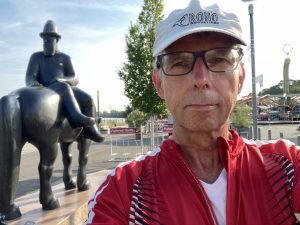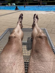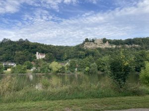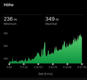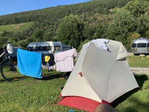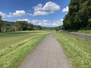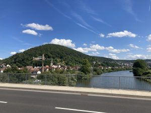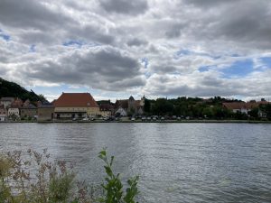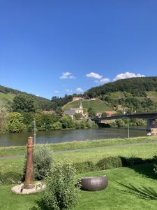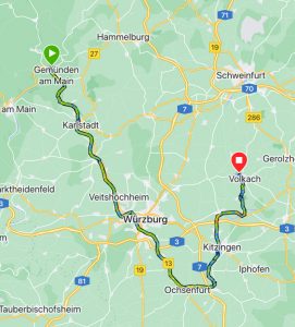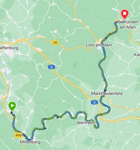 Heute habe ich mich ganz auf Komoot verlassen, bis auf ein Industriegebiet und eine Bahnhofsunterführung (Aufzüge waren erfreulicherweise in Betrieb) hat das sehr gut funktioniert. Die Gegend ist sehr hübsch, insbesondere zwischen Miltenberg und Wertheim. Radweg war wieder erstklassig, ganz wenig Strasse. Nur in Marktheidenfeld musste ich schieben, da war eine sehr große Kirmes mit vielen Besuchern am Main. Der Main wurde 5 mal überquert, so war ich zeitweise auch in Baden-Württemberg. Das Geschlängel des Mains fällt auf dem Rad garnicht so auf, dafür bin ich nicht schnell genug (Sonne stand auch hoch). Der Campingplatz in Gemünden hat ein angeschlossenes Freibad, da konnte ich baden statt duschen. Heute abend muss ich mal nach Pasta schauen, das Zwiebelschnitzel mit Bratkartoffeln von gestern lag doch etwas schwer im Magen.
