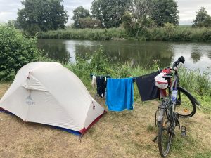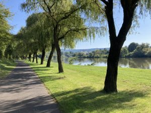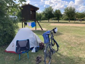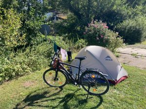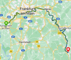 Bis Frankfurt Gerbermühle ist alles wohlbekannt, ab dann ist Neuland. Ein kurzes Stück geht’s durch die Offenbacher Stadt, dann wieder der sehr hübsche, fast durchgängig asphaltierte Radweg am Main, der zudem ziemlich leer ist. Mittags gibt’s einen kurzen Stop im Rewe, zum Glück war das noch auf deutscher Seite. Wie ich später erfahren habe, ist heute in Bayern Feiertag, musste mir also Getränke an der Tanke holen. Aschaffenburg war auch nochmal etwas Strasse, Hafen musste umfahren werden und ein Teil des Radwegs war gesperrt. Im Gegensatz zu den Empfehlungen von Komoot bin ich konsequent auf der linken Mainseite geblieben. Erst Wörth war mir wieder bekannt von der letzten Fahrt nach Albanien, da kam ich aber vom Odenwald runter an den Main. Am Ausgang von Wörth habe ich die heutige Etappe auf dem Campingplatz Mainruh beendet.