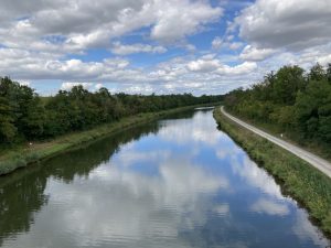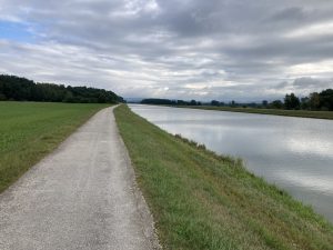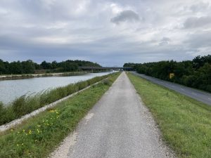 Zum Abschluss waren beide Etappen flach. In Fürth ging es gleich wieder an die Pegnitz, die sich kurz darauf mit der Rednitz zur Regnitz vereinte. Etwas weiter nördlich führte die Route dann an den Main-Donaukanal, an dessen Ufer der Weg immer wieder von Asphalt zu Split und zurück wechselte. Das war das einzig spannende in dieser recht langweiligen Ebene, auch Schifffahrt fand kaum statt. In Forchheim floss die Regnitz ein kurzes Stück im Kanal mit, um etwas später wieder alleine weiter zu mäandern. Am Kanal bin ich nach gut 3 Stunden wieder in Bamberg eingetroffen, wo sich der Kreis der Mainfahrt geschlossen und das fehlende Stück vom letzten Jahr nachgeholt wurde. An sich hatte ich noch 2 Etappen in Reserve, auf denen ein paar Mainschleifen übersprungen und der Odenwald überquert worden wäre, aber das wäre auch nicht spannend gewesen. Bis zur pünktlichen Abfahrt des Flixbus nach Frankfurt hatte ich noch eine Stunde, die ich zum Imbiss bei Rewe und Bäcker genutzt habe.
