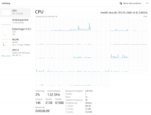 Zum Test habe ich erstmal Windows 11 Pro Workstation installiert und einen WLAN Adapter in einen USB Port gesteckt. Treiberseitig hat einiges gefehlt, aber nach der Installation der Asrock .INF Treiber wurde im Gerätemanager alles erkannt. Nur die SSD war gleich voll, weil sich Win11 für Hibernation und Page File 128GB bzw. 64GB reserviert hat (kommt davon, wenn man endlich mal genug RAM hat). Im Leerlauf hat Win11 72W gezogen, mit GPU Furmark und CPU Stress Test ging es dann hoch auf 340W, also alles im Rahmen und nicht so laut (kein Vergleich zum ProLiant, der insbesondere mit nicht-HPE PCIe Karten auf volle Windstärke geschaltet hat).