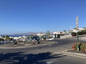 Am zweiten Ruhetag mache ich erstmal einen Spaziergang zum 3,5km entfernten Lidl. Kekse und Bier sind günstiger als im Spar beim Hotel. Auch das stille Wasser kostet nur die Hälfte, aber den 8l Kanister trage ich nicht für 1€ Ersparnis zurück ins Hotel. Auf dem Rückweg schaue ich unten in Fariones nochmal an 2 Radläden vorbei, aber es gab nur unpassende Shimano Schaltrollen. Also versuche ich die nächsten Ausfahrten ohne die Unterlegscheibe und kontrolliere eventuellen Verschleiss. Nachmittags gehe ich im Meer schwimmen, ohne Wind muss man auf keine Wellen achten und die Strandmatte fliegt auch nicht weg. 3er Atmung klappt gut, aber 20° Wassertemperatur sind etwas wenig in Badehose. Beim nächsten Mal nutze ich den mitgebrachten Neo. Obwohl die Uhr 1058m aufgezeichnet hat, fehlt die Streckenansicht im Meer. Vielleicht laufe ich nochmal zur Playa Grande, da sind die Bojen für den Ironman im Wasser.